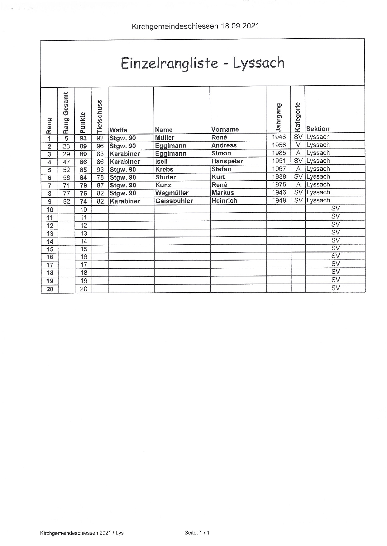 | Feldschiessen Resultate Lyssach | ||